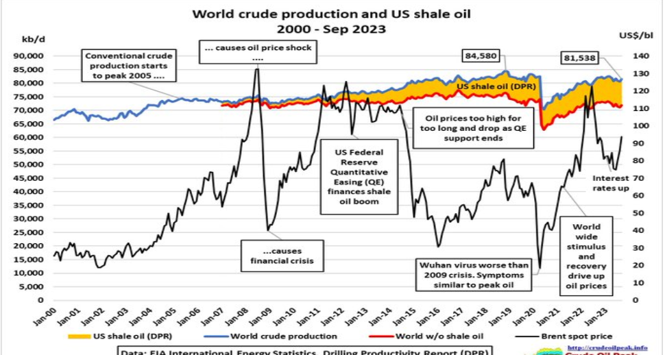 Etant donné l’importance dominante du pétrole et du gaz dans la consommation d’énergie des sociétés industrielles et l’étroite corrélation qui existe entre consommation d’énergie et richesse matérielle, se produirait alors pour celles-ci un appauvrissement progressif ayant pour effet une interminable crise économique et sociale.